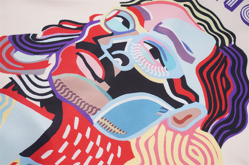 Camisa blanca L'Arche Fleure de Casablanca con un estampado floral divertido, confeccionada en sarga de seda con la estructura cuadrada característica de la marca y completa con un cuello cubano.