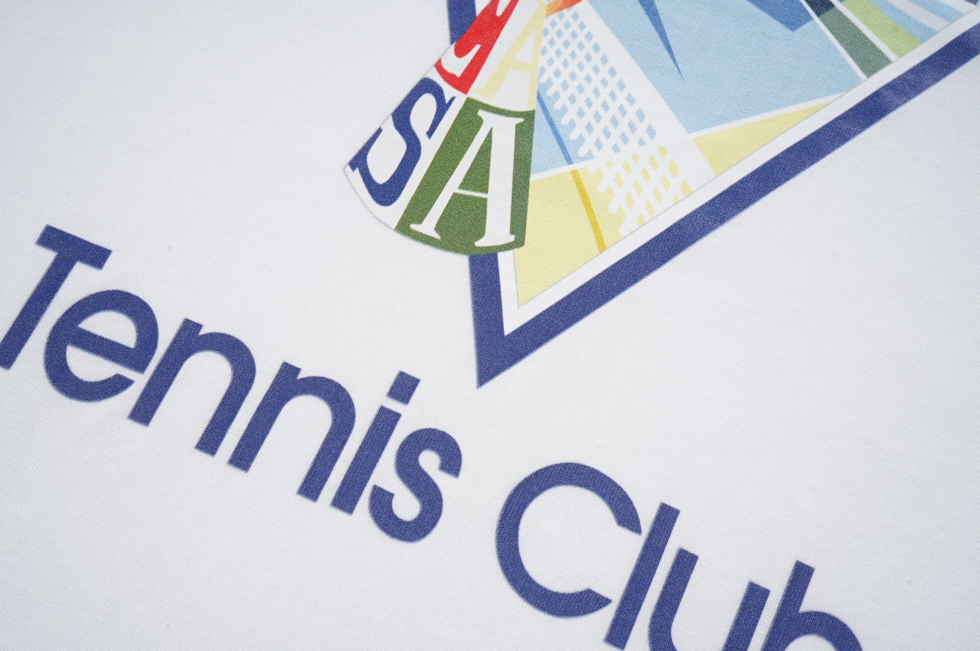 La camiseta Triomphe D'Orange presenta un estampado de la obra de arte distintiva de la casa que incorpora tenis y nuestra pirámide naranja repetida en un estampado más grande en la espalda. Confeccionado en 100 % algodón orgánico y completado con un cuello redondo clásico y una etiqueta con la marca Casablanca.